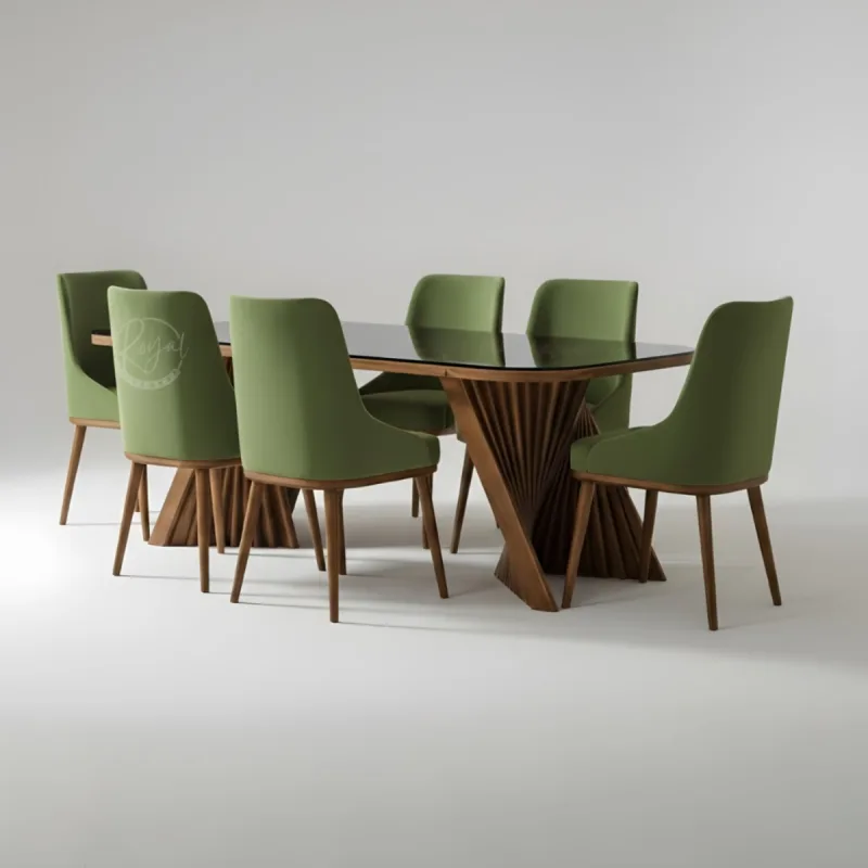 Royal Nirvana Nilambur Teak Wood Dining Table With Glass Top