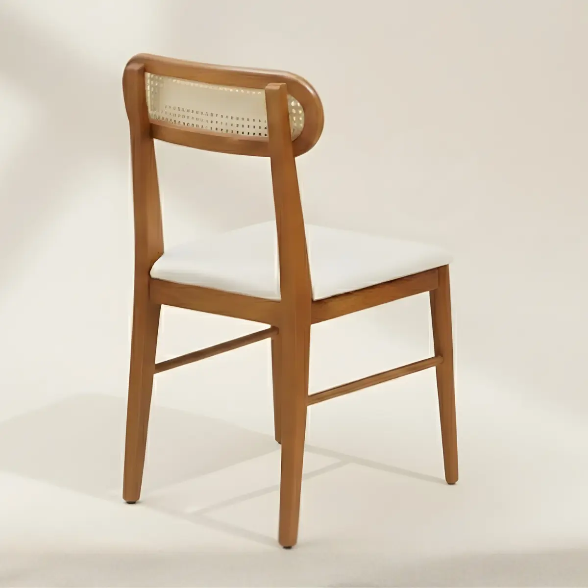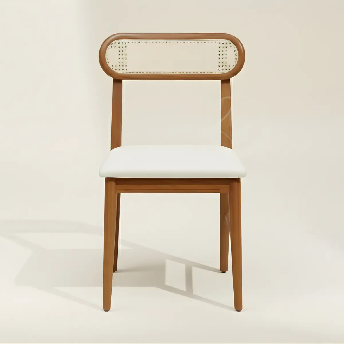 The rounded frame construction for this teak wooden cane dining set requires sophisticated woodworking creating smooth curves. The wood either steam-bends creating permanent curves or gets cut from wider stock—either method demands skill and precision. The curves must match across all four chairs creating visual consistency. The radius must feel right—too tight appears pinched, too gentle loses the rounded character. This teak wooden cane dining set's perfect rounded frames prove expert execution whether through patient steam-bending or careful curve-cutting with thoughtful grain orientation.