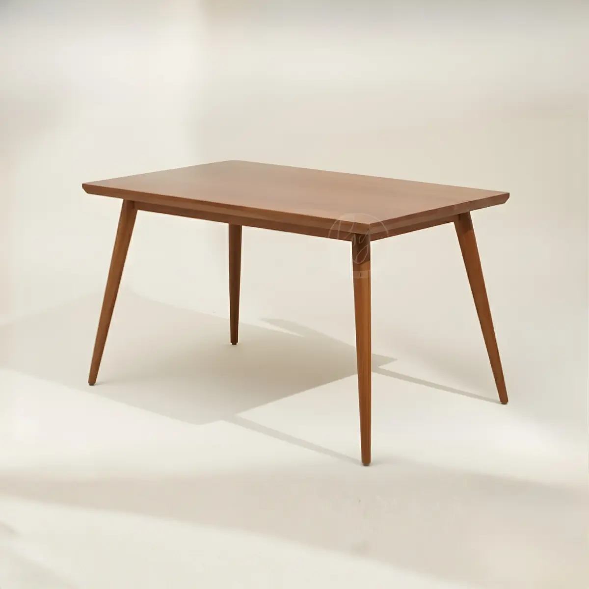 The table leg design for this teak wooden cane dining set creates classic mid-century profile through tapering. The legs narrow toward their bottoms reducing visual mass while maintaining structural strength. The taper typically occurs on two adjacent faces maintaining square cross-sections at any height. Creating uniform tapers across four legs requires precision. The legs attach to table underside using mortise-and-tenon joints, dowels, or modern hardware—whatever specific method employed must create secure lasting connections. This teak wooden cane dining set's stable wobble-free table proves successful leg attachment and construction.