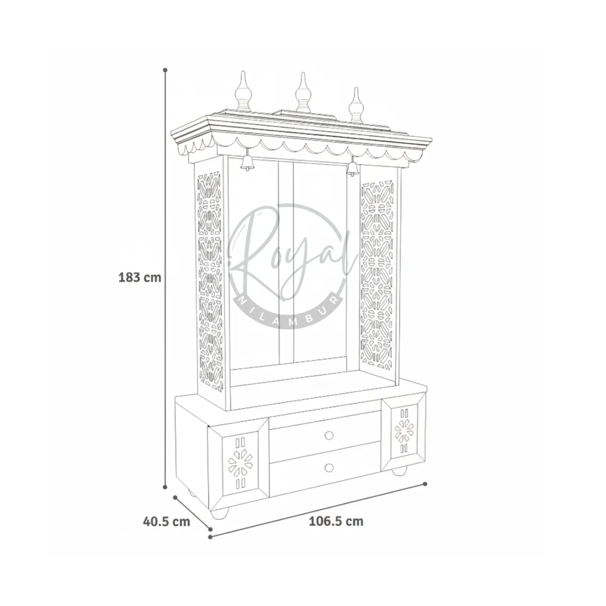 Transform a corner of your home into a sacred sanctuary with the Royal Divyant Nilambur Teak Wood Pooja Mandir. Crafted from 100% authentic Nilambur Wild Teak, this handcrafted wooden pooja mandir combines traditional design with modern functionality, offering both spiritual solace and practical storage solutions.