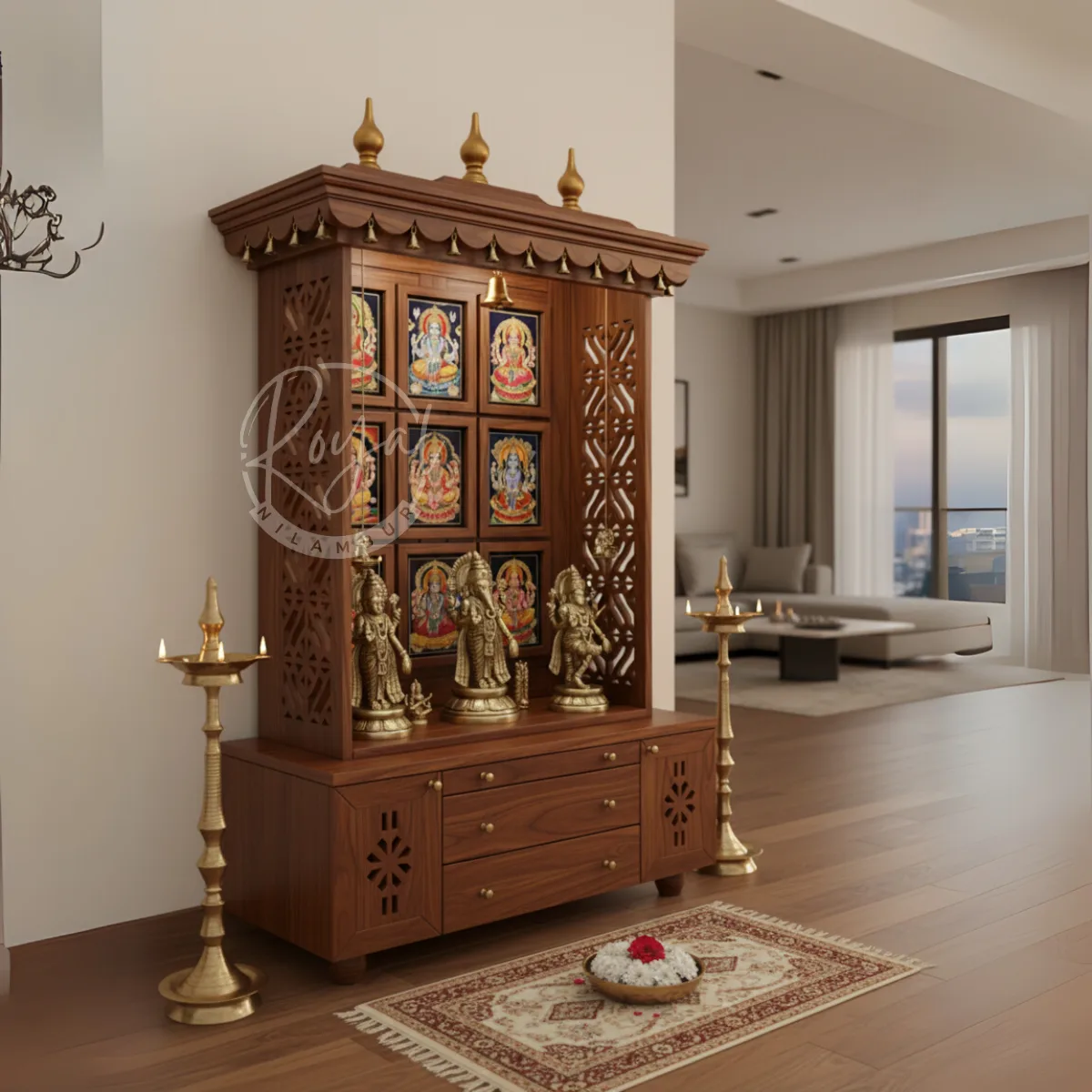 Royal Divyant Nilambur Teak Wood Pooja Mandir – Handcrafted Home Temple with Storage