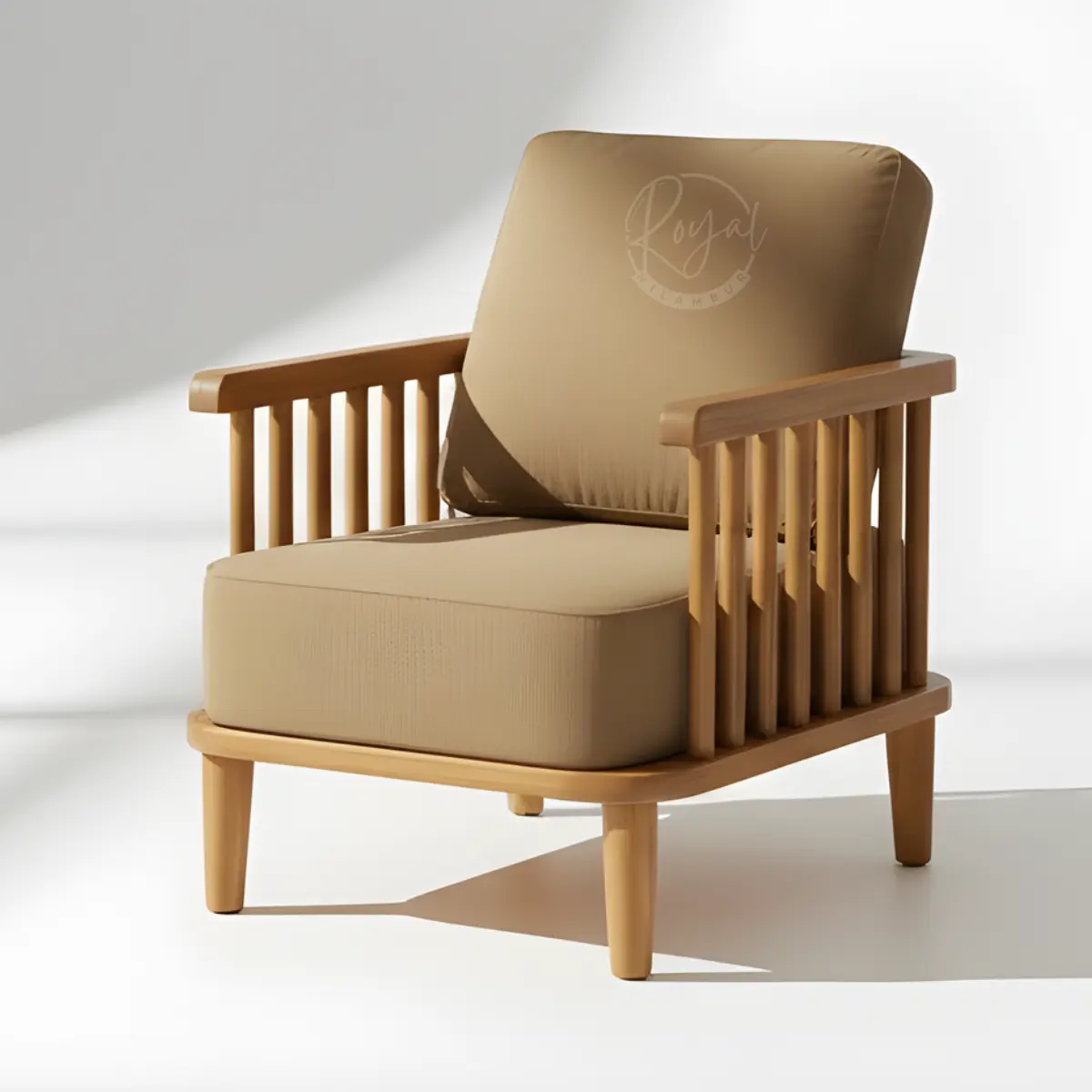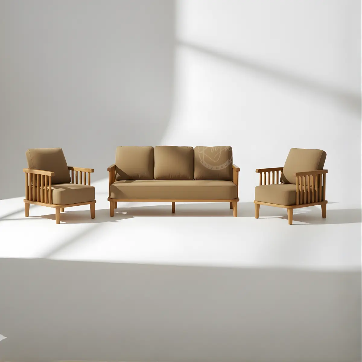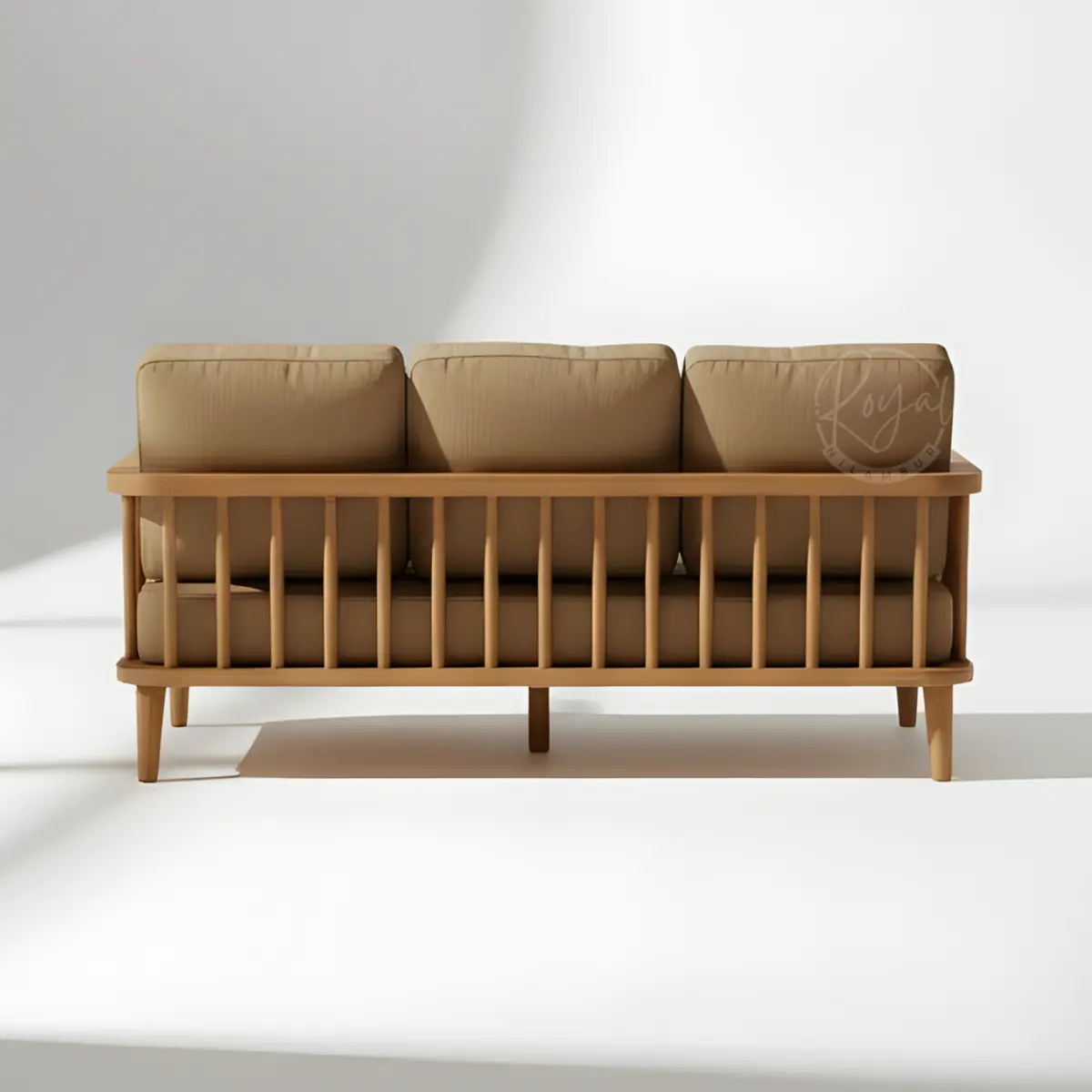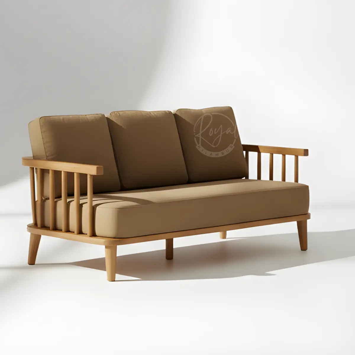 Transform your living room with the Royal Elvorn wooden sofa set, handcrafted from authentic Nilambur Wild Teak. This luxurious 3-piece wooden sofa set combines traditional Indian craftsmanship with contemporary design, featuring premium beige upholstery and elegant vertical slat armrests. Experience unmatched durability and timeless beauty with India’s finest teak wooden sofa set from Royal Nilambur.