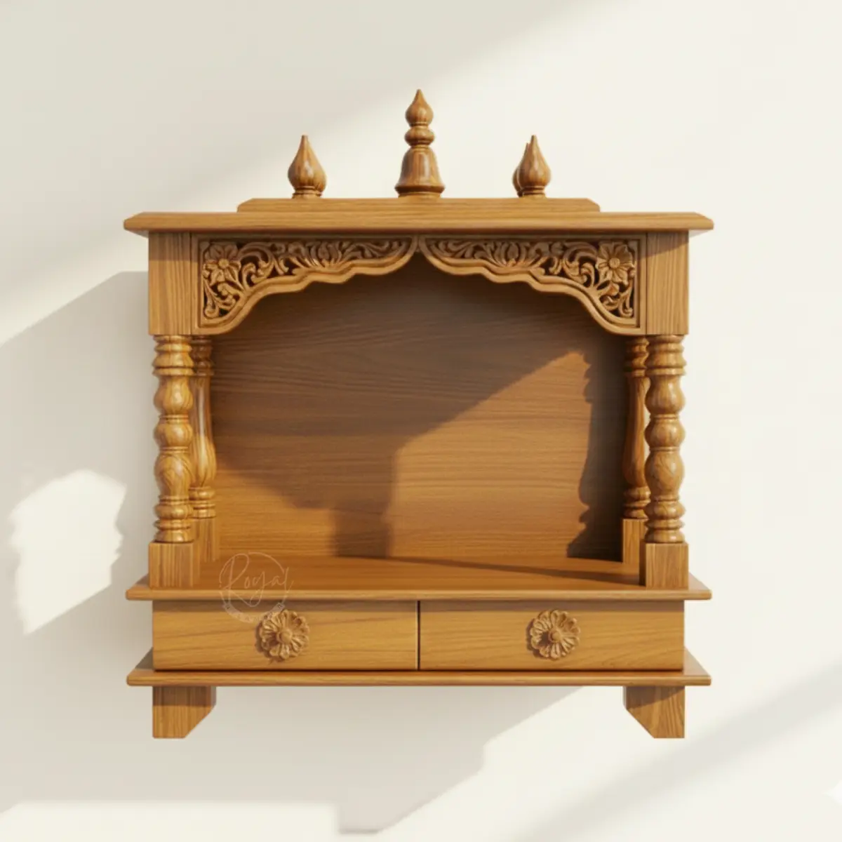 Experience sacred craftsmanship with the Royal Pavitra teak wood pooja mandir—where tradition meets devotion.