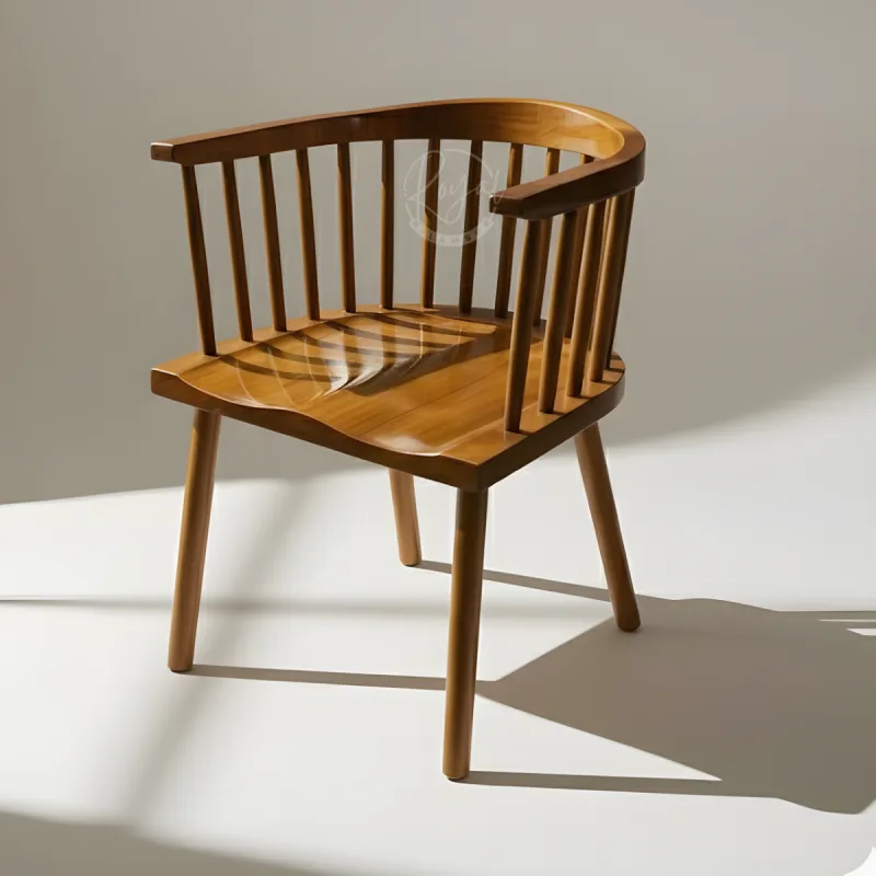 An artistic blend of sculptural curves and classic craftsmanship, the Royal Varyan Nilambur Teak Chair embodies minimalist elegance and enduring comfort. Handcrafted from authentic Nilambur teak wood, this chair adds a touch of sophistication to any modern or traditional interior.