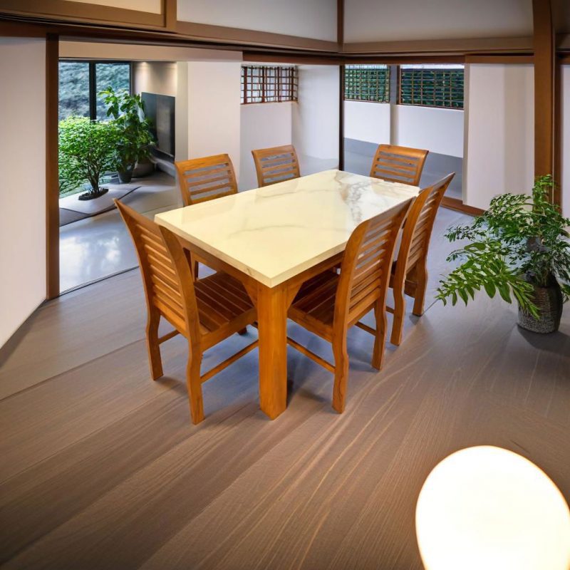 In addition to its visual appeal, the Royal Vitarana Teak Wood Dining Table is easy to maintain. The natural oils in teak wood make it resistant to spills and stains, and a simple wipe-down is often enough to keep the surface looking pristine. Over time, the wood will develop a rich patina, enhancing its beauty even further.
