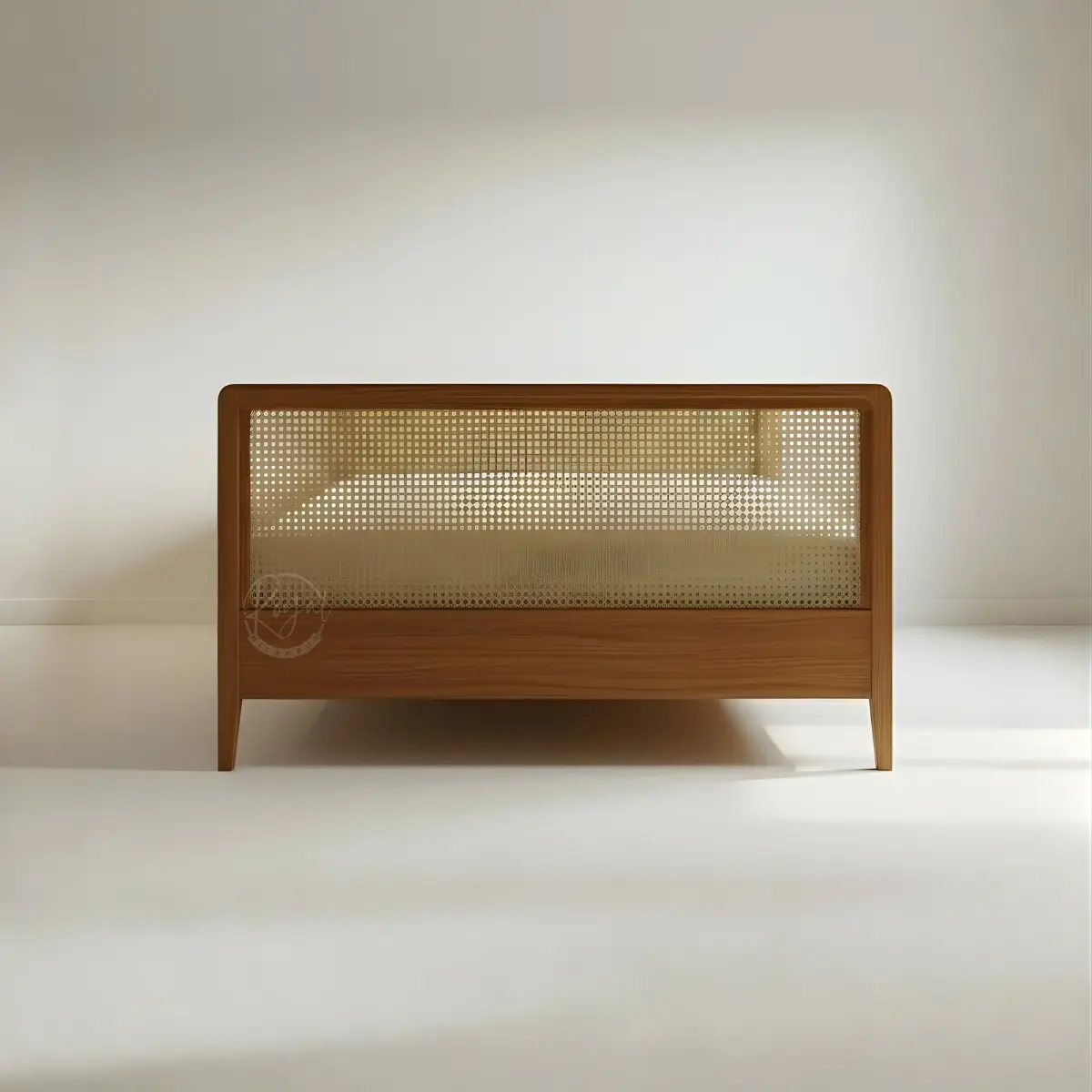The design philosophy underlying this wooden cane cot addresses contemporary bedroom challenges through natural material integration. Modern living demands bedroom furniture serving multiple needs—comfortable restful sleep environments, visual appeal creating serene spaces, durability justifying investment, appropriate sizing for contemporary bedroom dimensions, and health-conscious material choices avoiding synthetic off-gassing. Natural material furniture delivering across these categories provides exceptional value. This wooden cane cot fits that category elegantly—beautiful enough to anchor sophisticated bedroom interiors while practical enough promoting optimal sleep conditions through breathable natural materials. The design proves furniture can satisfy both aesthetic aspirations and wellness requirements when approached thoughtfully.